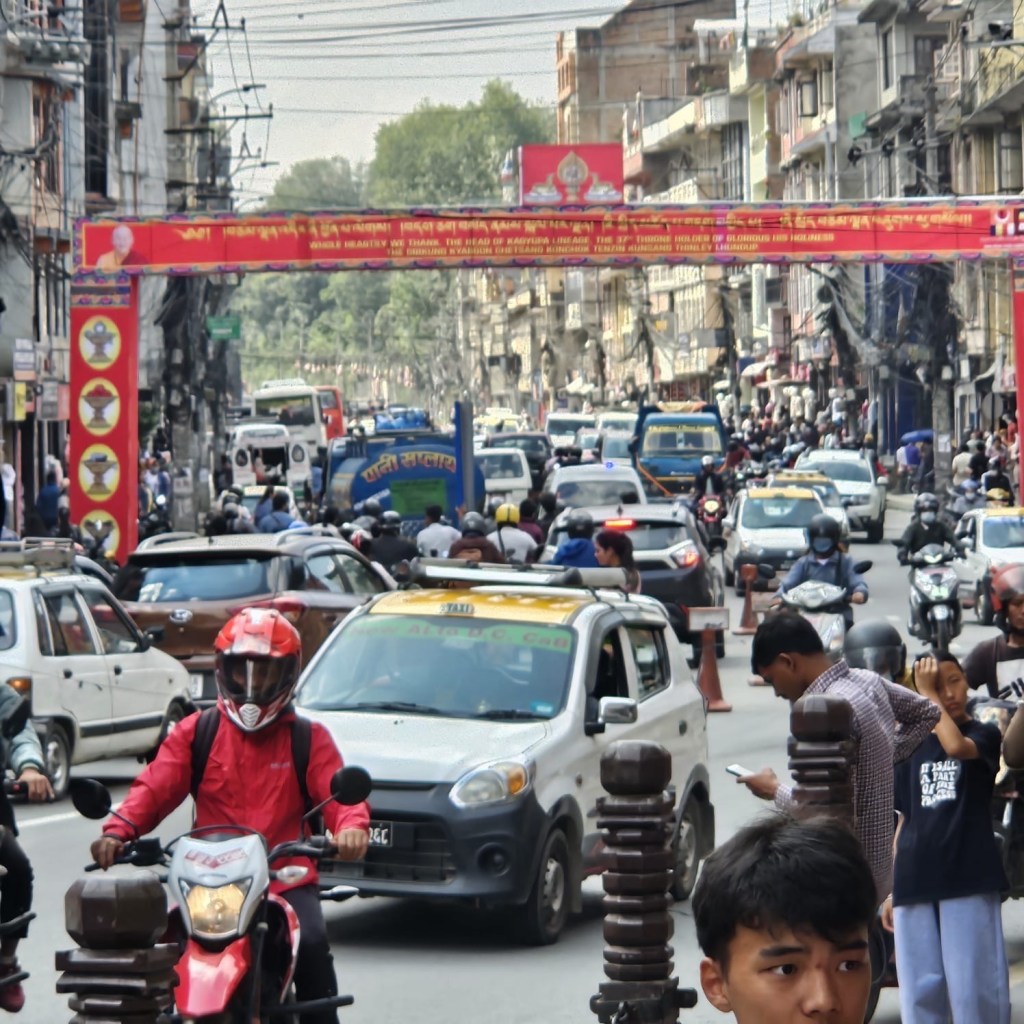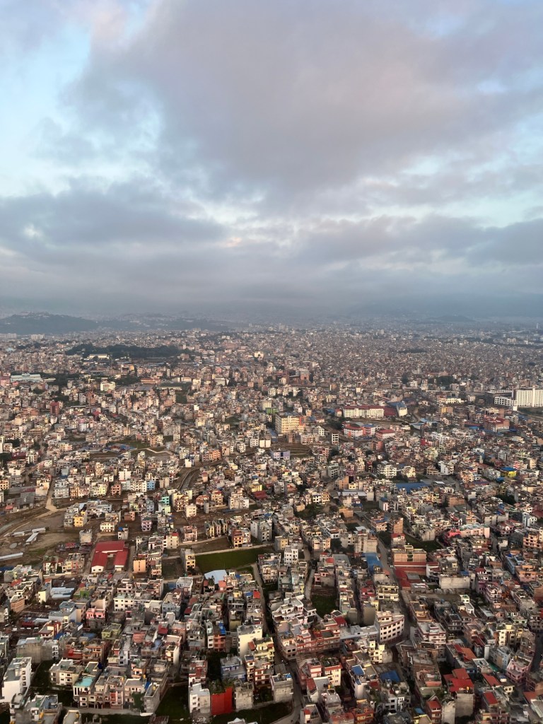 Arrivés sains et sauf à Katmandou! 6h20 atterrissage. Sundar, notre comparse Népalais, nous ramasse et on s’en va au Green Buddha Boutique Hotel, dans le quartier Bodnat.