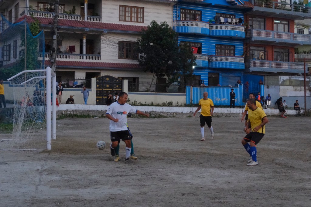 Visite du quartier, particulièrement autour de la Grande Stupa (la plus grande du Népal), on marche tranquillement, on boit du jus de canne à sucre frais écrapout (miam), du dal bat pour le lunch, (on y reviendra, miam aussi), On va voir les copains de Sundar jouer au foot, des momos pour souper (miam encore) et au dodo à 8h30!!