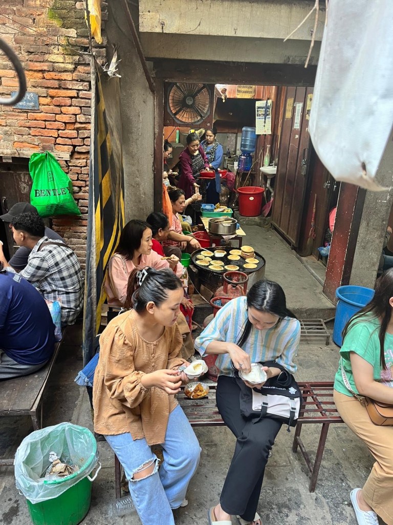 En fait, on mange tout ce que l’on veut à Kathmandu et Pokhara, vraiment de tout du «street food» full amides jusqu’aux restaurants haute cuisine du Hyatt ou Dwarika entre autres.