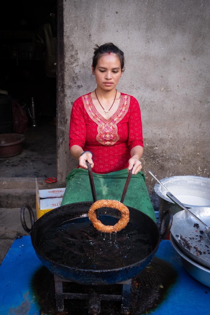Avec Sundar on a fait une tournée de bouffe de rue étalonnée pour touriste. Dans les quartiers Asan Bazar et New Road tous surchargés de monde. En ce moment les Népalais Hindous célèbrent la plus importante fête de l’année Dashawn, et comme nous à Noël, ils sont très très nombreux à consommer insouciamment.