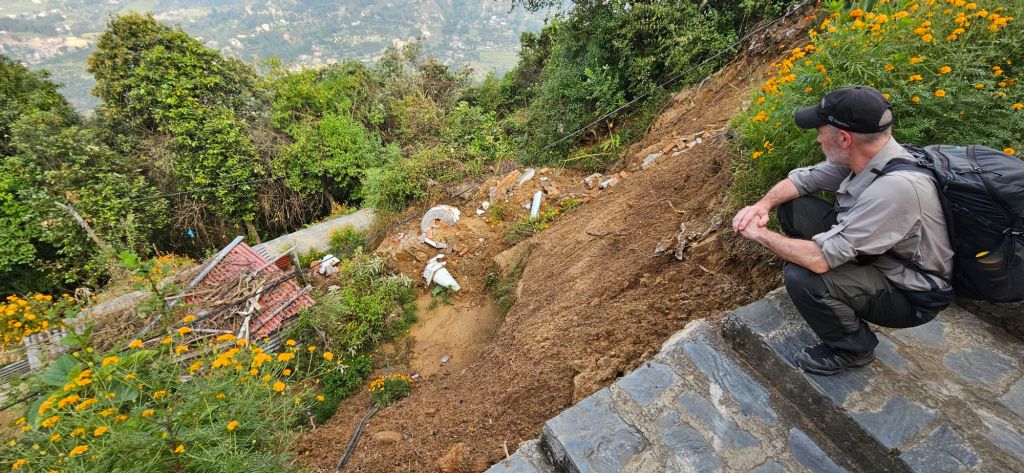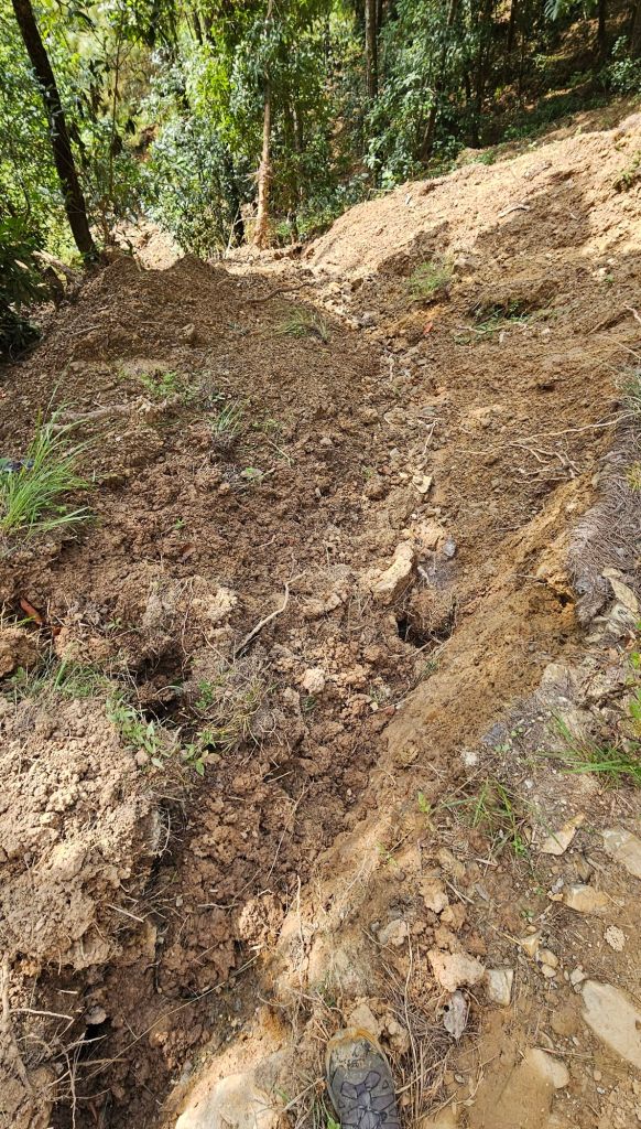 Tous les sentiers que Sundar avait prevus nous faire prendre ont été détruits! Au final nous avons marché sur la route parfois couverte de boue, ou autrement partiellement deblayée de la boue et des arbres qui jusqu’à récemment bloquaient le chemin.