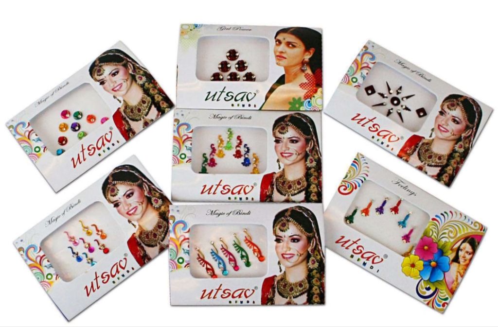 Motif peint ou posé sur le front des hindoues. Traditionnellement, un bindi, tache rouge ou noire ou encore un bijou, signifiait que la femme était mariée : elle l’avait obtenu à la cérémonie du mariage. Aujourd’hui, c’est devenu un élément décoratif de maquillage à la mode.