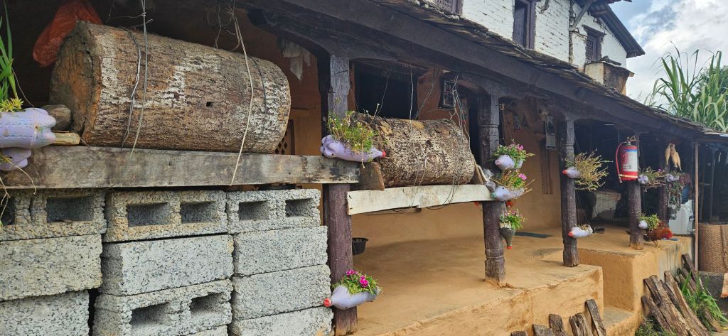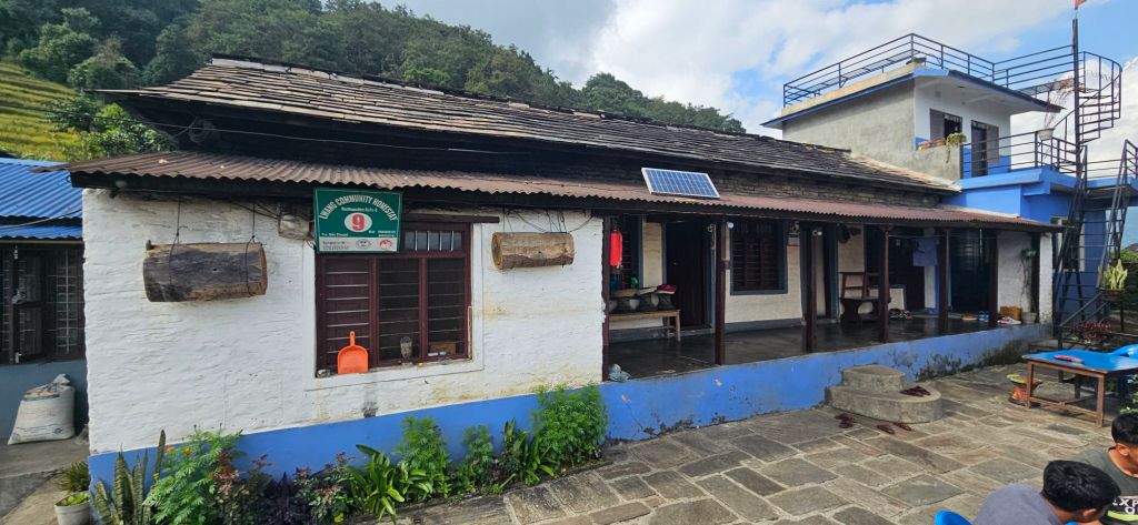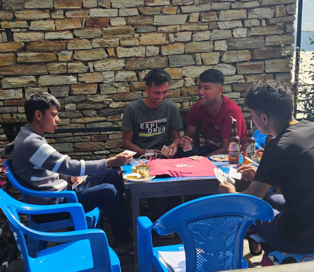 Nous arrivons à notre gite par l’arrière du village donc d’en haut. Plus nous approchions plus la musique était forte. Il y avait une belle gang de 8 jeunes adultes népalais qui jouaient aux cartes, fumaient tout en sirotant des grosses bières Gorkha (des quilles de 650ml).
